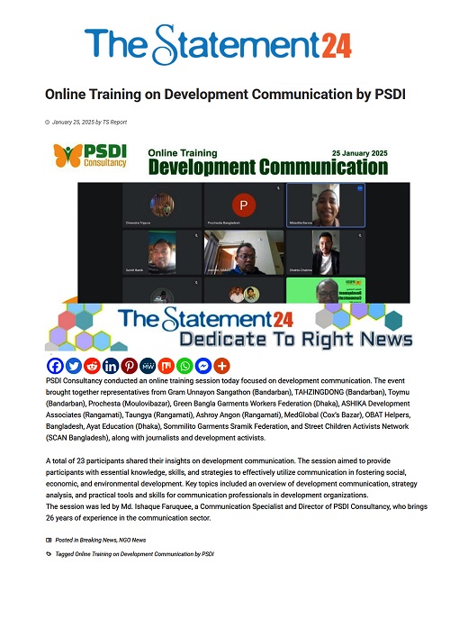 Conducted by Md. Ishaque Faruquee, Communications Specialist and Director, PSDI Consultancy